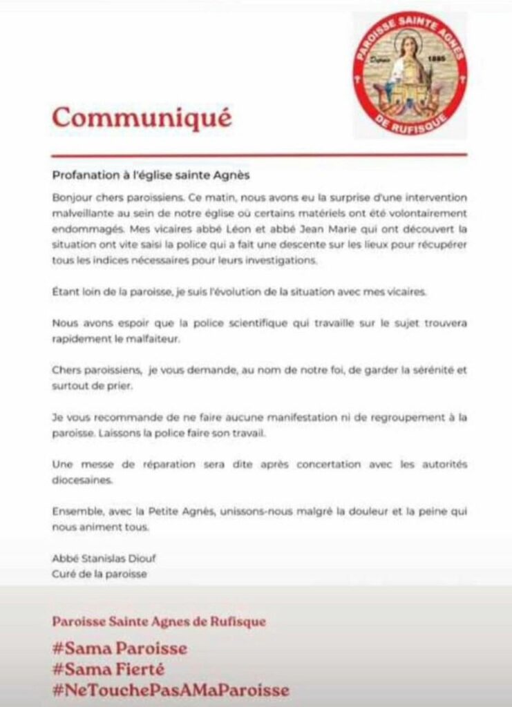 Rufisque (Sénégal) : profanation de l’église sainte Agnès