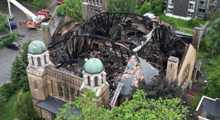 L’église anglicane Sainte-Anne, construite en 1907-8 dans le quartier du petit Portugal à l’ouest de Toronto, en Ontario au Canada, a été complètement détruite dans un incendie ce 9 juin. La coupole s’est effondrée sur le choeur, ainsi que les peintures qu’elle portait, réalisées en 1923 par le célèbre Groupe des Sept du Canada. Elle était classée monument historiques.