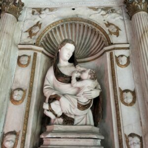 Le long du fleuve Arno se trouve à Pise, accrochée au quai, une merveille de style pisan, la chapelle Notre Dame de l’épine, qui abrite une autre merveille – la Madona di Latte (Madone du lait, ou allaitante), de Nino Pisano – vers 1348, une rare représentation de la Vierge qui allaite Jésus enfant.