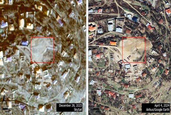 “Des images satellite datées du 4 avril montrent que la destruction du cimetière Ghazanchetsots à Chouchi est terminée, rapporte le Caucasus Heritage Watch.