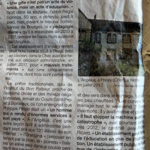 Ce 23 novembre est paru dans Ouest-France, dans les pages régionales, un entrefilet où le journaliste épouse entièrement la thèse de l’accusation dans le procès de l’abbé Spinoza, jugé actuellement dans le procès de l’ex-école hors contrat de l’Angélus.