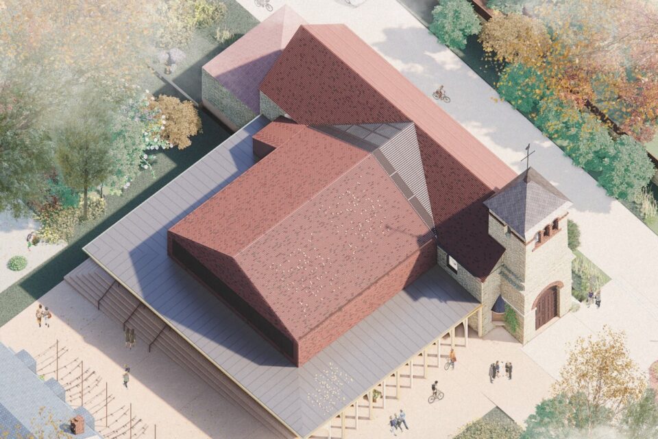 « Le cabinet d’architectes a travaillé pour préserver tout ce qu’il était possible de préserver dans la partie historique de l’église, tout en créant un lieu avec une touche moderne, notamment par le biais d’une grande verrière qui sera située au-dessus de l’autel. Et nous essayons aussi de reprendre les éléments de charpente qui ne sont plus utilisables en tant que tels pour en faire du mobilier pour l’église ».