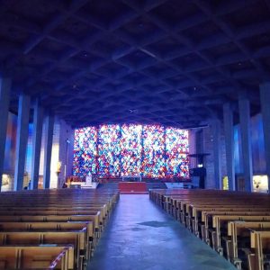 Située face à la gare et ouverte en journée, l’église Notre Dame du Cierge (1956-58, architecte Jean Crouzillard, grande verrière Gabriel Loire) connait des problèmes d’intrusion et de dégradations graves.