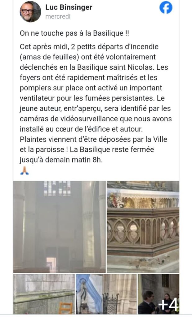 Le 4 février dernier deux départs de feu, rapidement éteints, ont eu lieu dans la basilique lorraine Saint Nicolas de Port, à 15 km à l’est de Nancy. L’auteur présumé serait un enfant de 10-12 ans, recherché.