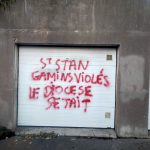 Des tags comme “Saint-Stan lycée du viol“, “Saint-Stan : gamins violés le diocèse se tait”, “St Stan lycée du viol 1971-1999” étaient encore visibles juste en face de l’entrée principale, sur des portes de garage. Des riverains nous ont signalé que d’autres tags avaient été tracés rues Saget et Adolphe Moitié, du côté du pont Saint-Mihiel, notamment un énigmatique “St Stan = viols. Pervenche on vient te chercher“, qui se réfère peut-être au directeur – jusqu’en 1999 – et homme politique de droite, il a même été briévement député, de Saint-Stanislas.